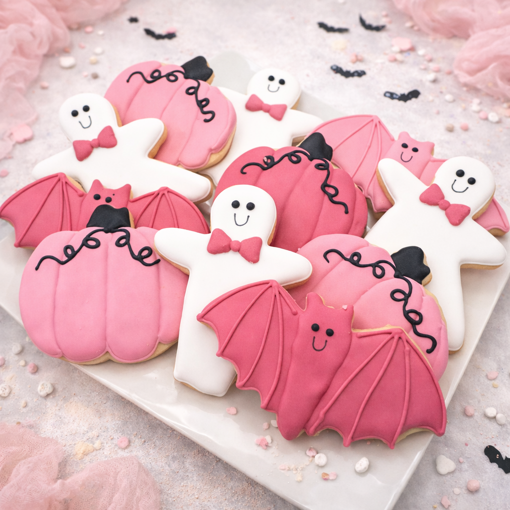 Playful Halloween-themed cookies designed for a shared birthday celebration — festive with just the right touch of sweet and spooky.