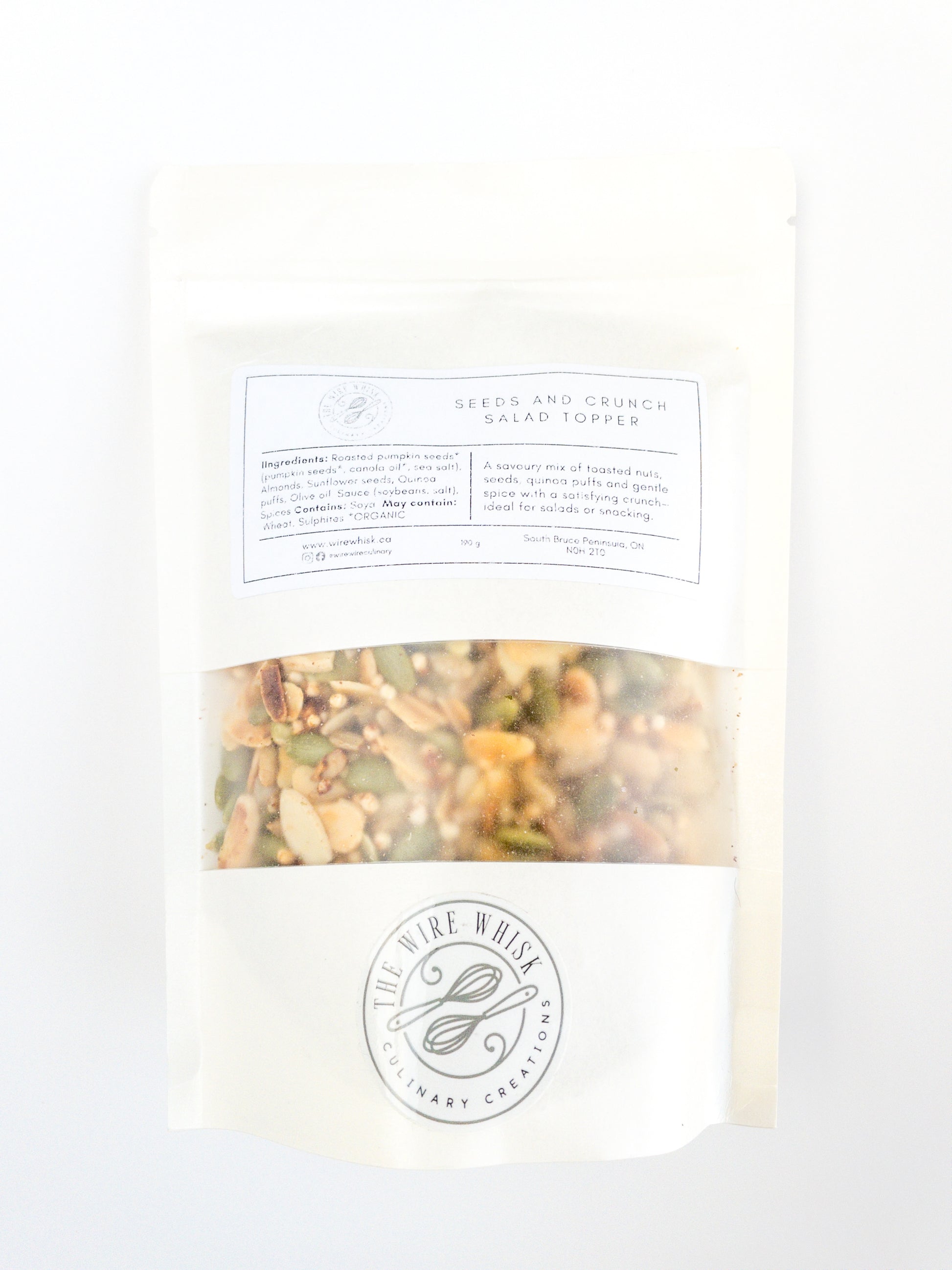 A savoury mix of toasted nuts, seeds, quinoa puffs and gentle spice with a satisfying crunch- ideal for salads, snacking, or on top of baked brie.